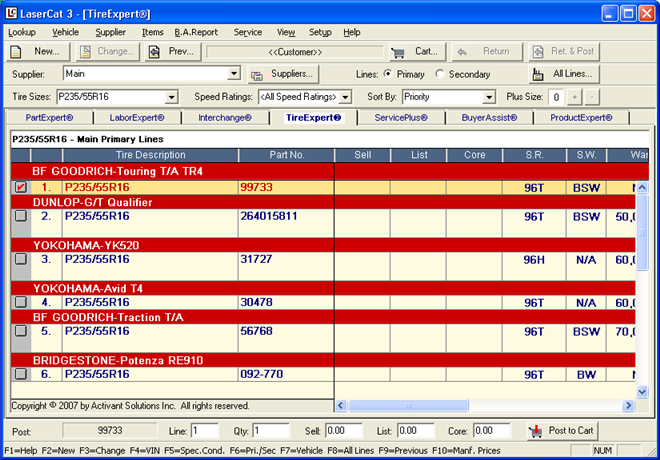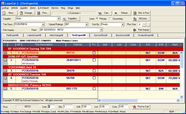 When you find the tire listing you want, you can select it and post it to the cart.