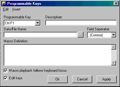 Select the programmable key. In this example, " Crtl F1" is selected. That is to say, once the process of setting up the macro is finished you will press Ctrl F1 to start the macro running.