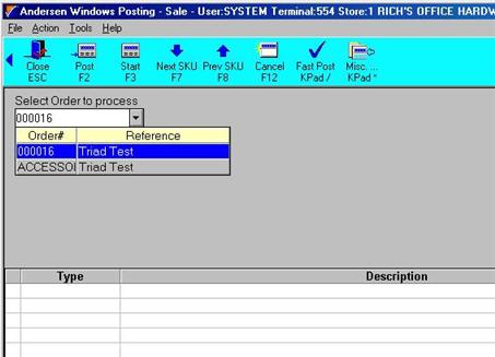 With your cursor in the Item (SKU) field, click Menu, and select Andersen Windows. The Andersen Windows Posting window displays.