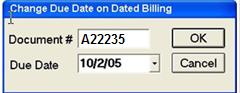 Enter the document number you want to modify (if you displayed the document in step 2, the document number is already filled in for you). Then enter a different due date, or leave the default of today's date. Click OK.