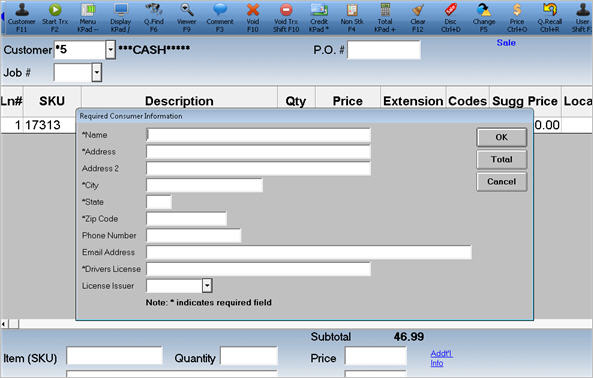When you press Total, the Required Consumer Information dialog displays.
