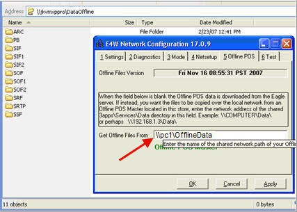 Important: In order for an Offline POS Client to get its refresh Data from the Offline POS Master, the Master must have performed at least one offline database refresh on Eagle For Windows level 18 or higher.