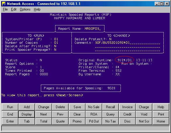 (Integrated Credit Cards users) Repeat steps 1-4 above, except check for MGROPROT. This report lists all of the offline credit card transactions that were uploaded and should be balanced with your end-of-day reports (specifically RDS and RCK).