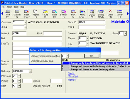 Option 3 – (this is the default option) Change all items to new delivery date. This changes all items already posted, along with any additional items being posted when you return to the Posting screen, to use the new delivery date.
