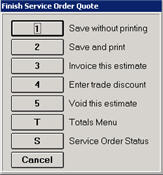 Press Total, and select the appropriate option from the Finish Service Order dialog. If you save the Service Order, you are given the opportunity to enter a deposit, just like you would with any POS Order.