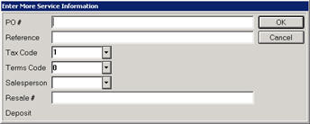 If the Enter Additional Service Information dialog displays, fill in the fields as needed, and press Enter.