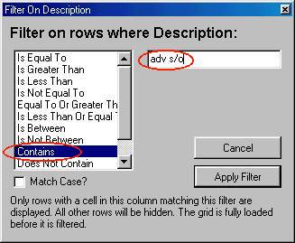 Click Contains, then enter "adv s/o" in the box.