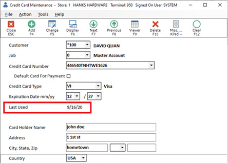 From the Customer Maintenance window, click GoTo, and select Credit Card Maintenance.