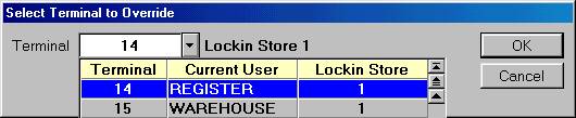 Click the arrow to the right of the Terminal box, select the terminal at which the clerk is in need of a manager's override, and click OK. The Remote POS Security Override dialog box displays.