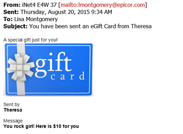 iNet eGift Card is a virtual in-store gift card which allows eCommerce sites to sale an electronic gift card and have it emailed to the recipient. It is similar to Eagle In-Store Gift Card, can be viewed alongside the Gift Card Viewer, and can be used in E4W and Eagle N Series. eGift Card is available on iNet 4.2 with Eagle 37.0896 or later.