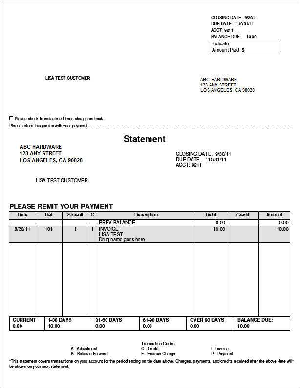 For PDX users, the system looks at the POS Quick Recall documents for your customer accounts to see if the default Rx drug SKU (as set up in option 9173) exists on them. If so, then if the patient, drug name, and quantity descriptor lines exist for that Rx item, the system prints the information in the body of the statement.