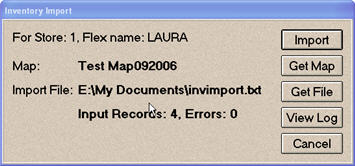 When the Import is complete, the screen displays the number of records read and errors. The errors are items that it could not find with that UPC Code or items that did not exist in the Inventory file.