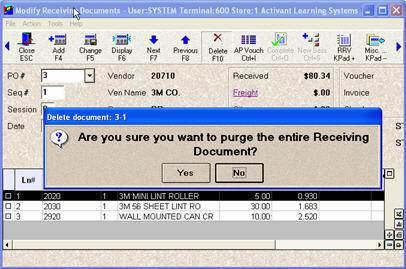 Important: This procedure only deletes the receiving document from MRV; it does not affect inventory in any way, nor does it delete the temporary voucher that was created when you ran Accounts Payable Passoff (APP) (Accounts Payable users only).