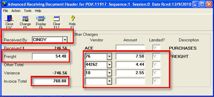 Re-open a closed document by posting values to "Other Charges" fields 2-5. Use the "Other" hyperlink or the Net Invoice hyperlink to access the Other Charges fields and follow the same steps listed above for posting separate vendor freight charges. Note that only these "Other Charges" fields can be changed; you can't change Quantity, Cost in the details screen, Freight, or Other Charges field number 1 in this header screen.