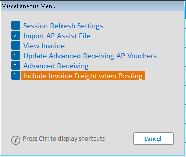 Misc Menu 6 - Include Invoice Freight Charges when Posting.
