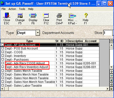 Dept - Adv Recv Inventory Adjust. Enter the Inventory Adjustment account for this department that you set up in the Chart of Accounts.