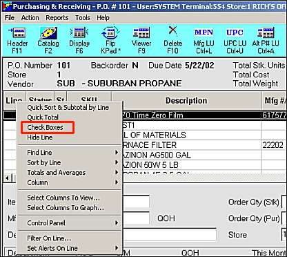 From the Purchasing and Receiving window, display the purchase order. For more information on displaying a purchase order, click here.