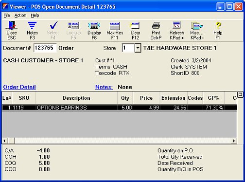 Click OK to exit the dialog box, or click Details to view the special order in the Open Document Detail grid.