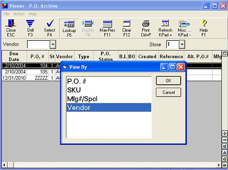 In the PO Archive Viewer, click Lookup. The View By dialog box displays.