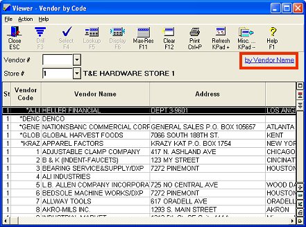 By default, the Vendor Viewer displays in Vendor Code order. If you'd rather display by Vendor Name, click the "by Vendor Name" link.