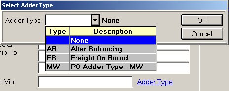 To change the Adder type code, from the list, click to select the Adder type that you want to assign to this PO. Click OK.