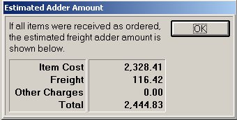 If the PO Status is F or P, a dialog displays with the estimated freight amount. Click OK.