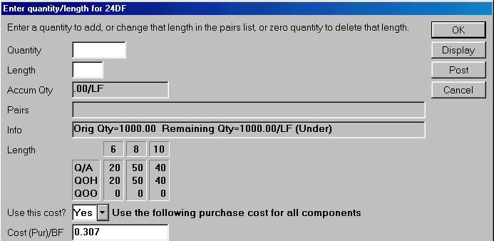To delete an entry, enter 0 in the Quantity box and enter the length you want to delete in the Length box.