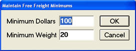 This field is a hyperlink, which means you can click on it to display the related function. Thus, if you need to enter minimums of dollars and weight for getting free freight, click the Freight Policy hyperlink and enter the minimums in the dialog that displays.