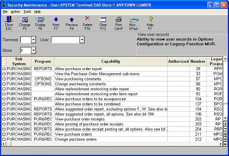 Double-click on the Sub System column heading to sort the security bits by subsystem (application). Then scroll down to the Purchasing bits.