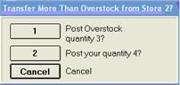If you enter a quantity that is greater than the available overstock quantity, a dialog asks you whether you want to post only the overstock amount, or the quantity you entered.