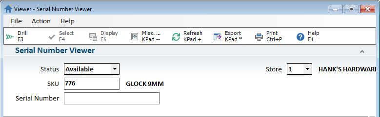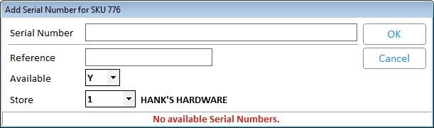 Add Seral Number for SKU 776 screen displays. Enter the serial number