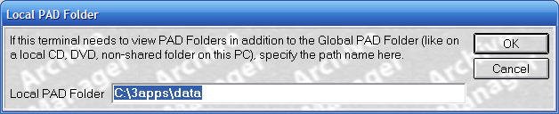 In the Local PAD Folder field, type the path to the Local PAD folder, and then click OK.