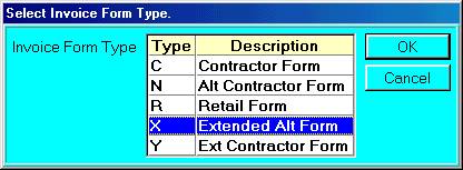 Click on the desired form type, and click OK. The Invoice Printer dialog displays again.