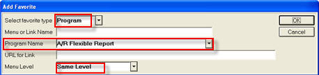 Menus (folders) help you organize your favorites, just like in Internet Explorer when you create a folder for your Favorites. To create a menu, select Menu from the drop-down list. In the Menu or Link Name field, enter a name for the menu. For example, you could enter "MY G/L FUNCTIONS" or "MY WEB SITES" (Tip: you may want to use all caps for menus for easy identification when making changes to your Favorites structure).