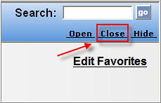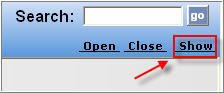 You can use the Open, Close, Hide, and Show links (located below the Search field).