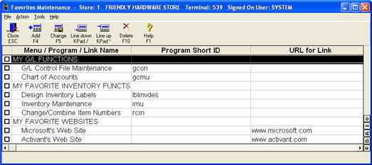 Review your Favorites structure in the Favorites Maintenance window. If you created menus (using step 2 above), notice that the Programs and/or Links are indented under the Menu(s) that contain them.