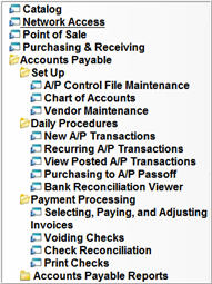 You can use the Search field in the upper right corner to quickly find a function in the menu by keyword. For example, if you search on "Statements," you’ll get a list of all the functions with "Statements" in their description (Printing Financial Statements, A/R Statements Report, etc.).