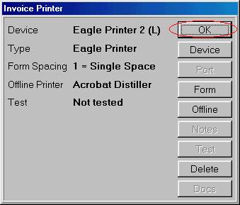 Use the following procedure to set up an invoice printer (and offline POS printer) for an Eagle for Windows terminal.