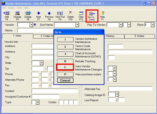 Select the vendor from the drop-down list, and click Display (if you already had the vendor displayed in Vendor Maintenance, the information displays automatically).