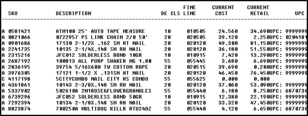 Run the Alternate Part Number Report (RAP) with options FKV to finalize the audit of UPC codes..