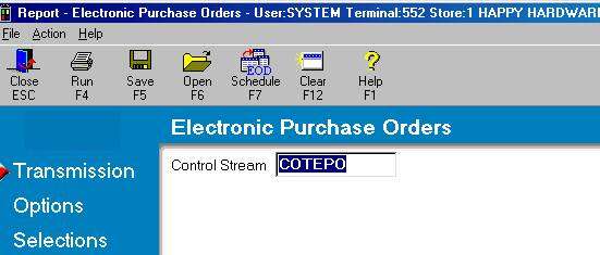In the Control Stream box, leave the default of COTEPO if that's the name of your control stream, or enter the control stream name you use to transmit POs.