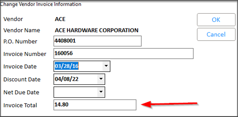 Use the Change Vendor Invoice Information window to adjust these fields: