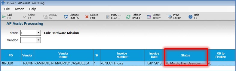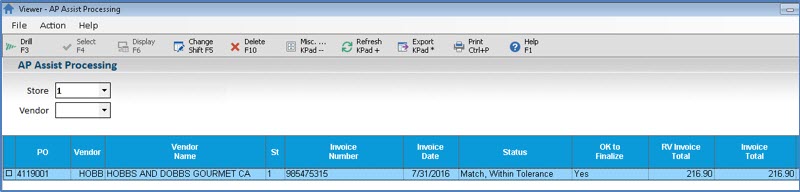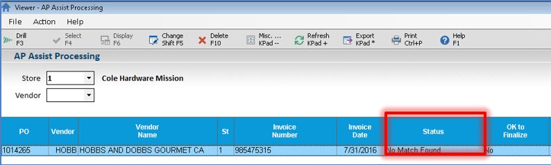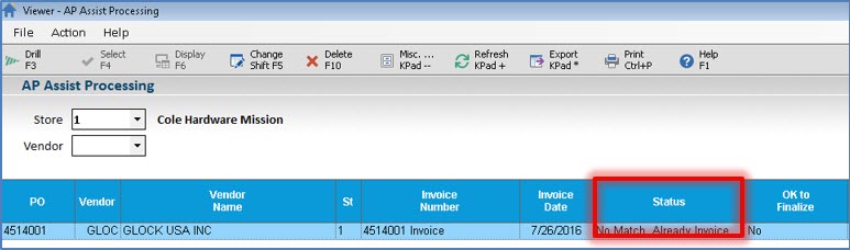The Status column in the AP Assist Processing Viewer will show if there is a match and if it is within tolerance.
