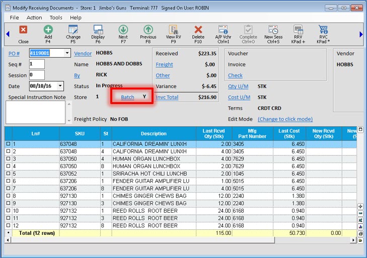 Ensure all receiving documents that have Batch flag is set to Yes.