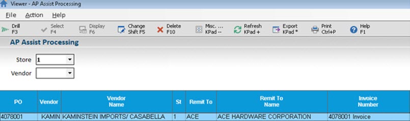 From the AP Assist Processing View, click F6 - Display in the Toolbar.