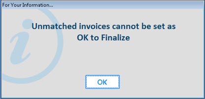 The OK to Finalize’ flag cannot be changed to Yes for No Match invoices.