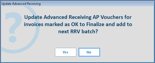 After this option is selected, a prompt displays to confirm the Update Advanced Receiving:
