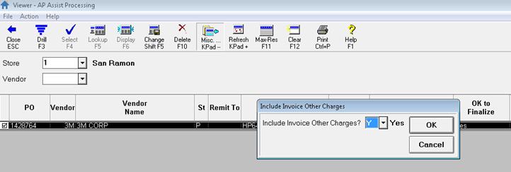 Note: Option 1823 "AP Assist – Update freight charges in MRV" and Option 1867 "AP Assist – Update Other Charges in MRV" must be set to Yes.
