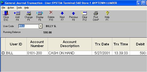 If you display a G/L entry added by RDJ-Z, you can "drill down" into the Daily Journal Viewer by clicking Drill or double-clicking on the entry.