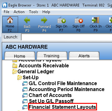 From the General Ledger Menu, under the heading "Setup," click Financial Statement Layouts.